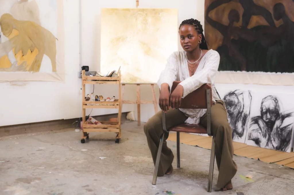 Kekana is the third and youngest recipient of the Makwande Art Residency. Her selection follows a relationship fostered with residency founder Nomaza Nongqunga Coupez. The residency not only selects for talent but for artists who show the disciplined markings of an invested commercial creative. The residency afforded her a private studio space for the first time in her practice, a far cry from painting from her bedroom. Acquired in partnership with LA Station, the collective art space allowed her to create in community with others. With more space and the curation of various gallery and museum visits, she emerges fully fledged, producing works on a scale not seen before.