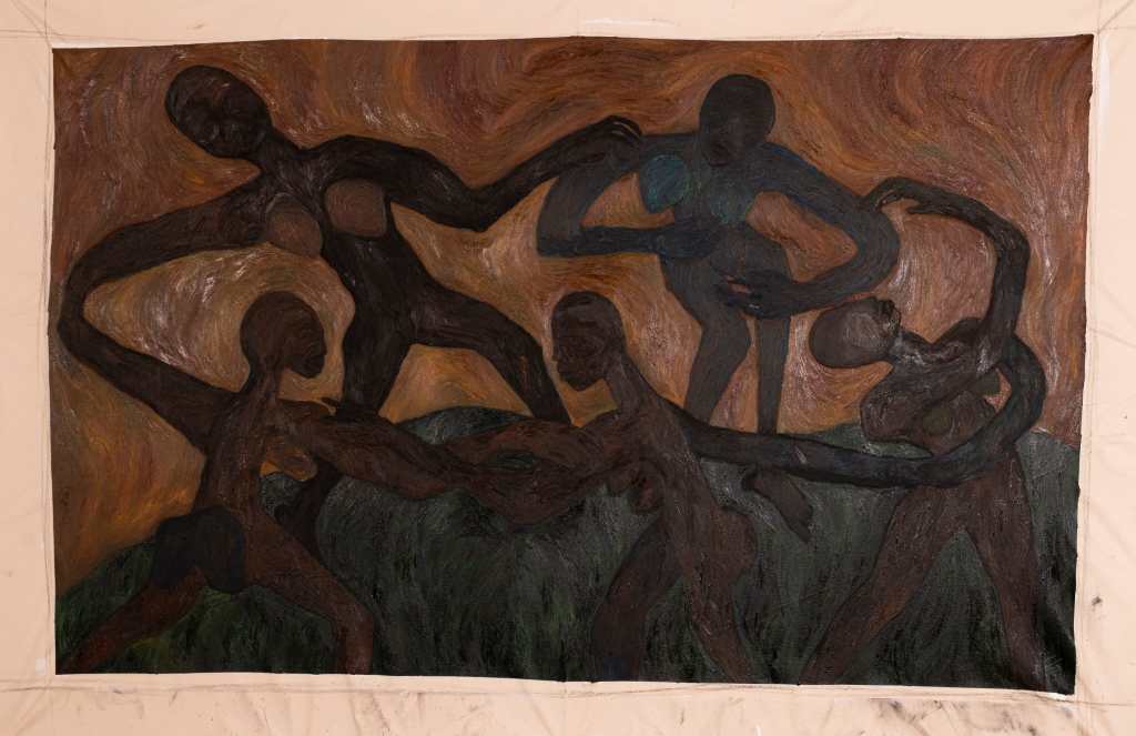 A 200cm/100cm piece takes centre stage on the long wall of the studio – a multifigure painting of deep oil and oil sticks on canvas. The still movement draws you in and calls for your own rhythm. The piece bears its conceptual origins from Martisse’s – The Dance, and Mariam Makeba’s – Pata-Pata. This closing piece pays homage to Kekana’s transcontinental influences, the celebratory arch of her residency. The figures, holding space for themselves while holding each other in joy convey the heart of – ‘Pata-pata is the name of a dance we do down in Johannesburg way, everybody starts to move as soon as Pata-pata starts to play.’